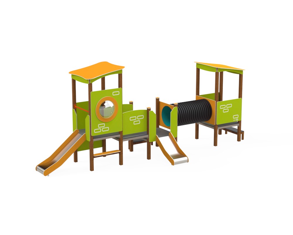En lekfull miniborg med två torn som inspirerar till rörelse, lek och äventyr för de yngsta.