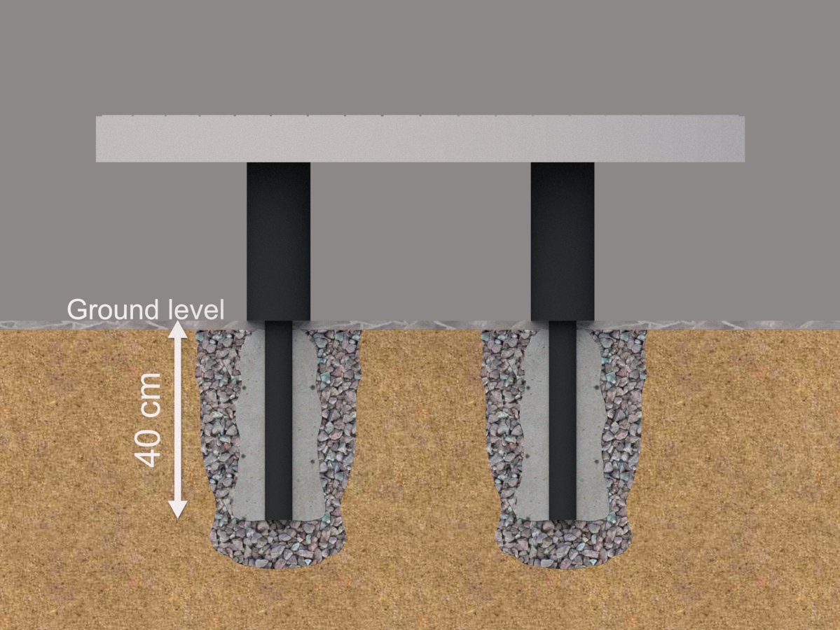 Elements bänk svängd för nedgjutning. Svenskt värmebehandlat och svanenmärkt trä. Varmförzinkad. Färgtillägg välj mellan 155 olika färger